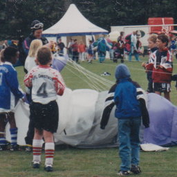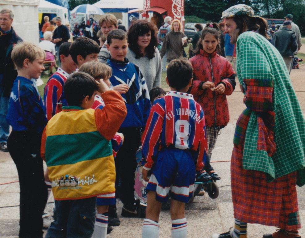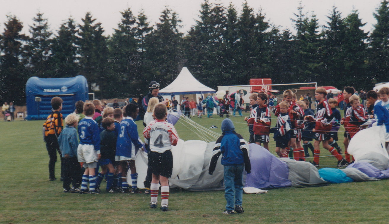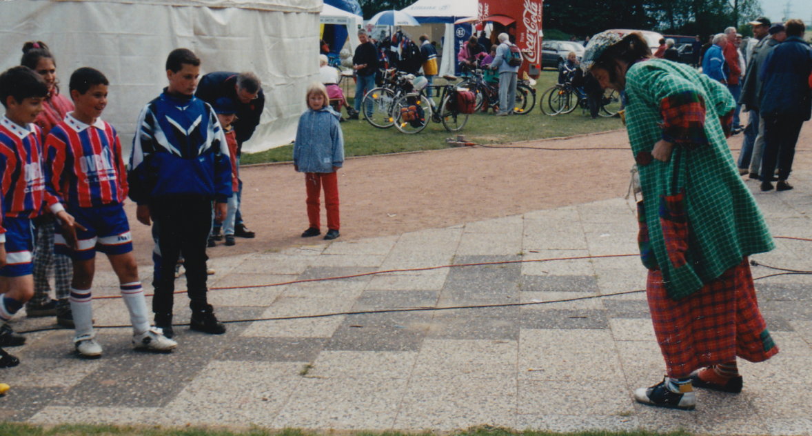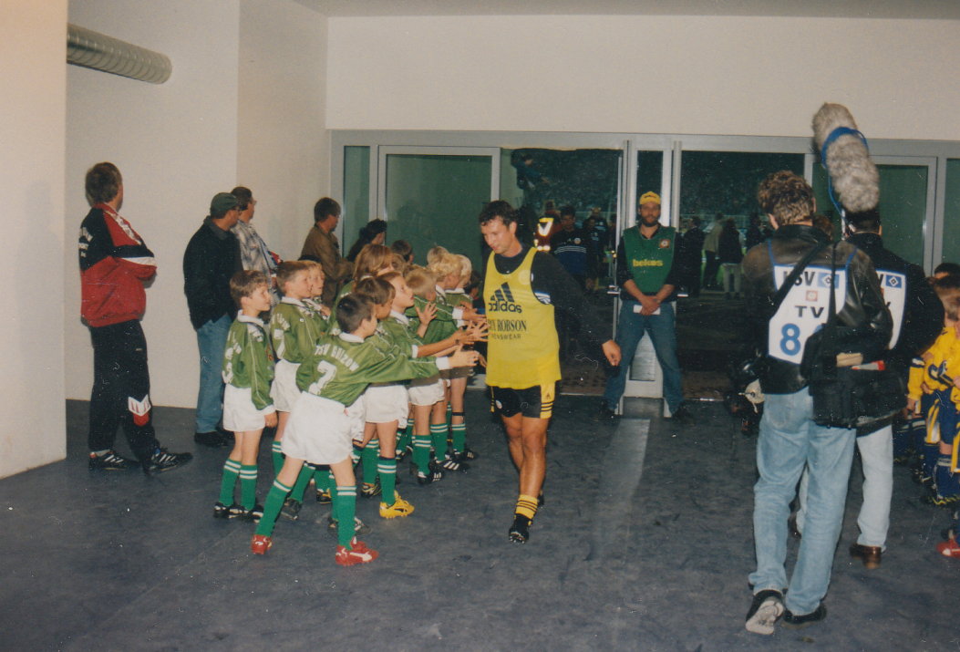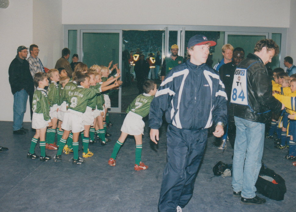 ... welcher in jenem Jahr dann zu Gunsten des Hamburger Blindenheimes stattfinden und der zugleich die Ortschaft Gülzow in den Mittelpunkt der Fuäball-Jugend stellen sollte (und es natürlich auch tat). Eingeladen waren Vereine der E- und F-Jugend aus Schleswig-Holstein, Niedersachsen und Hamburg, aber auch jede Menge Prominenz: Horst Hrubesch, Tim Küchler („Neues vom Süderhof” und „Kinder vom Alstertal”), Monika Zinnenberg (Regisseurin), Roberto (Künstler), Moderatoren von Radio-Hamburg, und, und, und... Am Ende des Tages freute sich das Hamburger Blindenheim über die gewaltige Spendensumme in Höhe von 10.000.-- DM.