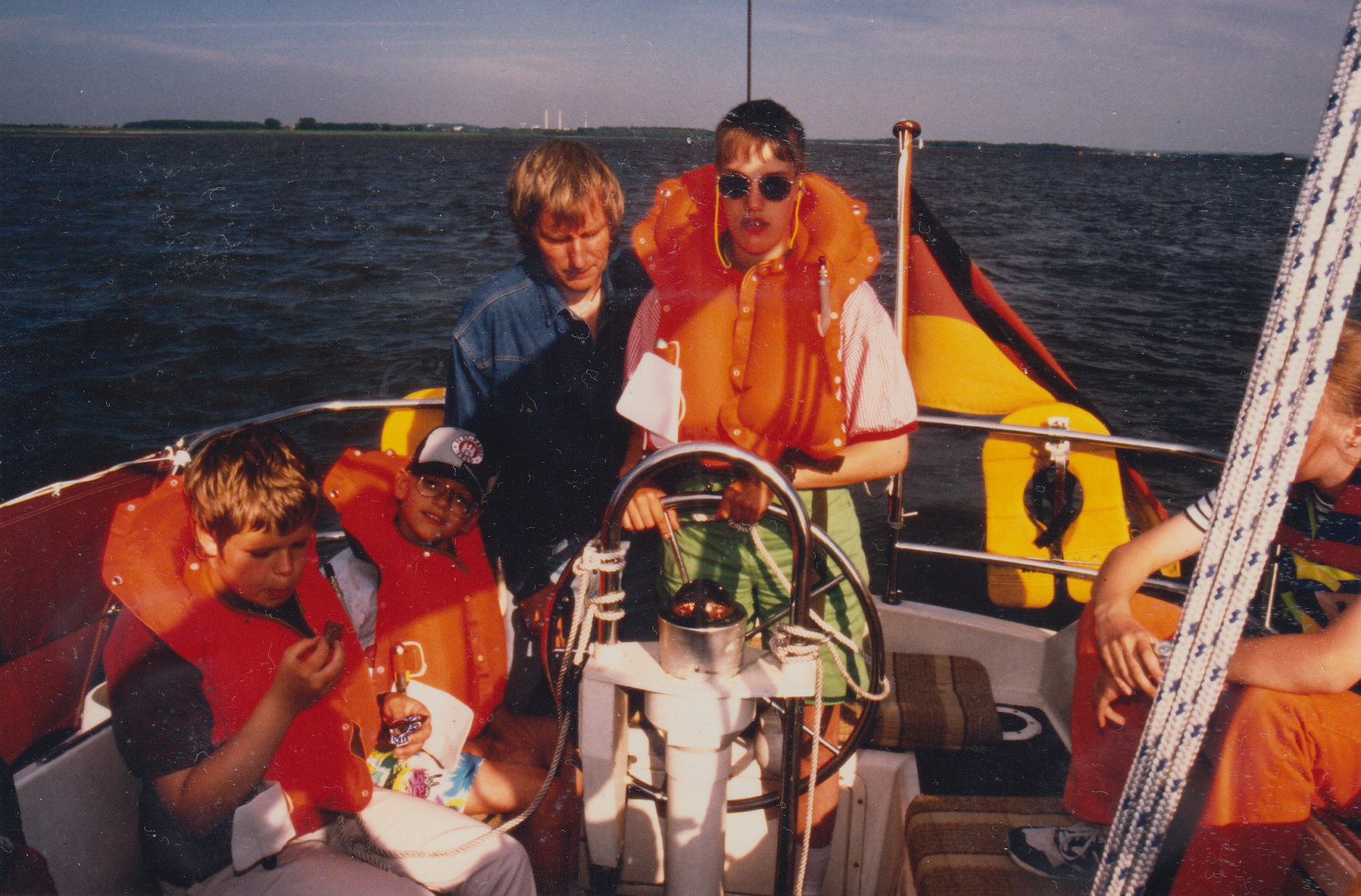 Meinen Kollegen Arnold brauchte ich überhaupt nicht zu bitten, gerne stellte er uns sich und seine Yacht für einen Tag zur Verfügung. Sein Boot hatte er gerade aus dem „Winterschlaf” geholt und wollte soundso einmal die Elbe hooch und runter fahren - da hat er uns halt einfach mitgenommen. Es war super, einfach ein tolles Erlebnis, diese Schaukelei nach rechts und links, nach oben und nach unten, hin und wieder die ganzen Wasserspritzer und natürlich der Fahrtwind.