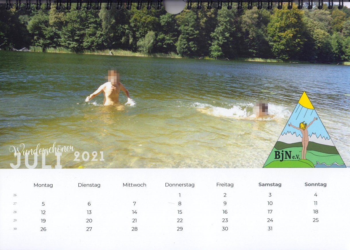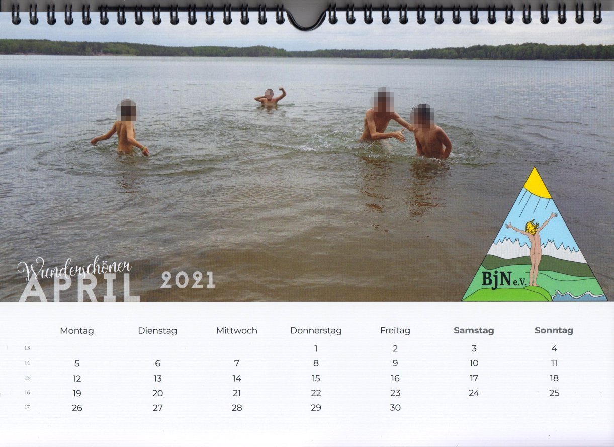 Wandkalender mit Spiralbindung vom Bund junger Naturisten (BjN) e.V. für das Jahr 2021