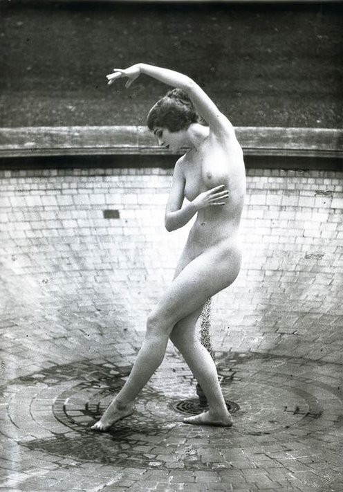 Bei seinen Aufnahmen von Tänzerinnen und Tänzern kam Genthe auch mit dem „nackten Ausdruckstanz” in Kontakt - im Studio, wie auch in der Natur.