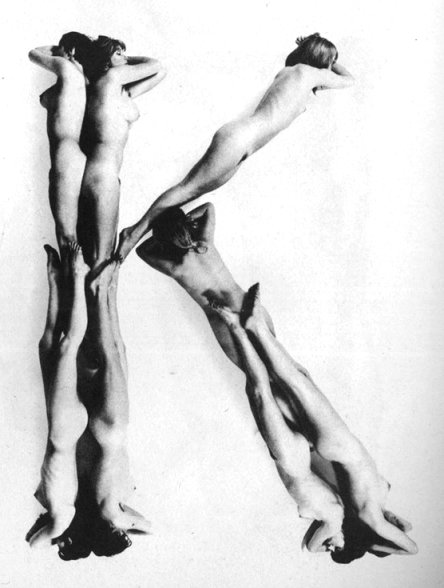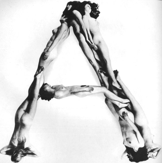 1971 schuf der niederländischen Künstler, Fotograf und Grafiker Ed van der Elsken (10.03.1925 - 28.12.1990), zusammen mit Anna und Anthony Beeke, Pieter Brattinga, Geert Kooiman und weiteren weiblichen Modellen, ein Alphabet aus nackten Körpern. Die Arbeit trägt den Namen „Belles Lettres - A Photoalphabet”.