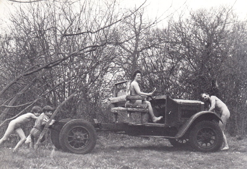 Zum Zeitpunkt dieser Aufnahme war das Auto allerdings nicht mehr fahrtüchtig und diente den Kindern nur noch als Spielplatz.