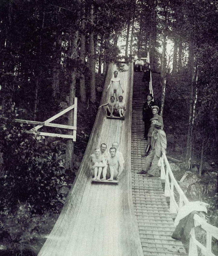 Veteranen des Finnischen Bürgerkrieges (1918) erholen sich in dem Sanatorium „Rauhasta” (→ „Frieden”) am Saimaa dem größten See Finnlands. Zur Erholung gehören neben der Ruhe natürlich auch Sport, Spiel und jede Menge Spaß, um die Verletzungen auszukurieren und die traumatischen Erlebnisse des Krieges möglichst zu vergessen. Zu diesem „Spaß” gab es unter anderem eine große Wasserrutsche, die direkt in den See führt.