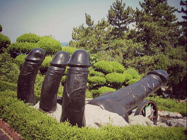 Die Kuriositäten rund um die Nacktheit führen uns nun nach Südkorea, in die Provinz Gangwon. Hier an der Ostküste liegt der Ort Sinnam, eine kleines, beschauliches Fischerdorf mit einer sehr interessanten Parkanlage, dem »Haesindang Park« - auch „Penis Park” genannt. Zahlreiche Phalli, phallische Statuen, erschaffen von koreanischen Künstlern, sind hier zu bewundern. Der „Penis Park” ist ganzjährig geöffnet, die Eintrittspreise günstig: