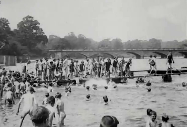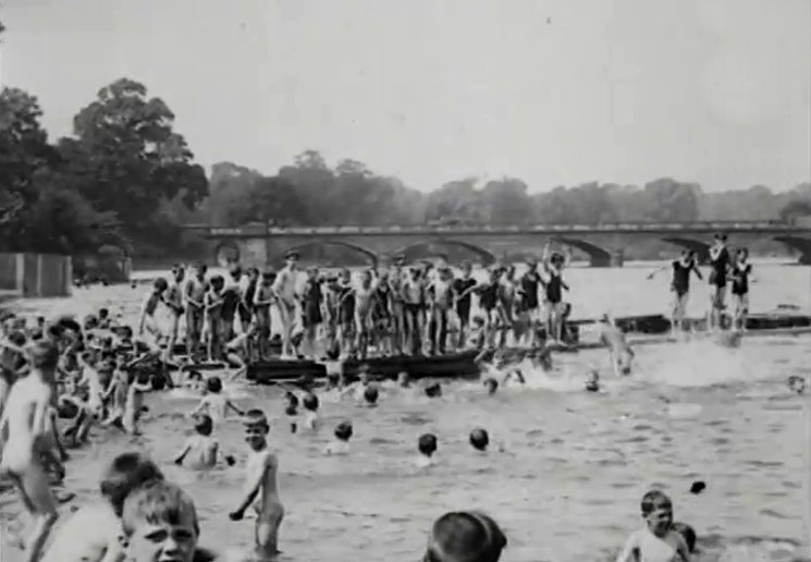 Die Kinder wussten sich jedenfalls zu helfen und kühlten sich in der Themse ab. Die kurze Filmdokumentation zeigt Kinder, die nackt und bekleidet im Bereich von Richmond, einem Wohngebiet an der Themse, planschen und baden.