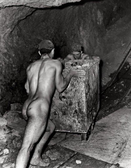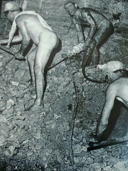 Die große Hitze und die hohe Luftfeuchtigkeit unter Tage machte das Arbeiten zusätzlich zu einer Qual, da war es schon eine enorme Erleichterung, auf die Arbeitskleidung ganz zu verzichten. Hier war man nackt, weil es eben praktischer war und man sich ohne Bekleidung einfach besser bewegen konnte.
