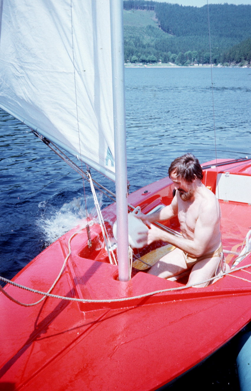 Wir waren mit dem Tretboot auf der Bleilochtalsperre unterwegs, das ist eine große Talsperre im Saaleverlauf. Dort fahren auch Fahrgastschiffe, Segel- und Motorboote u.ä., d.h. Mann/Frau sollte schon etwas bekleidet sein.