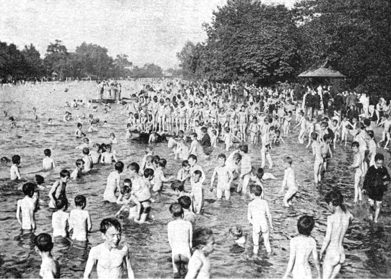 Die Bade-Teiche erfreuten sich schnell bei den Kindern großer Beliebtheit. Nackt zu baden, war vollkommen normal - wer hat schon ständig eine Badehose dabei, falls eine solche überhaupt vorhanden ist?