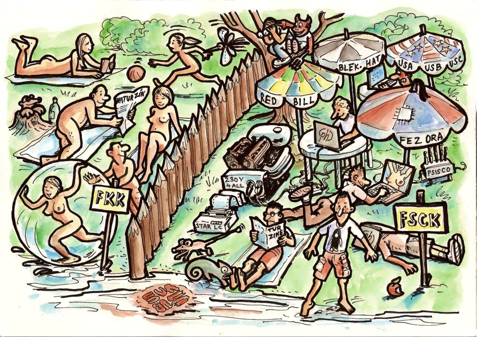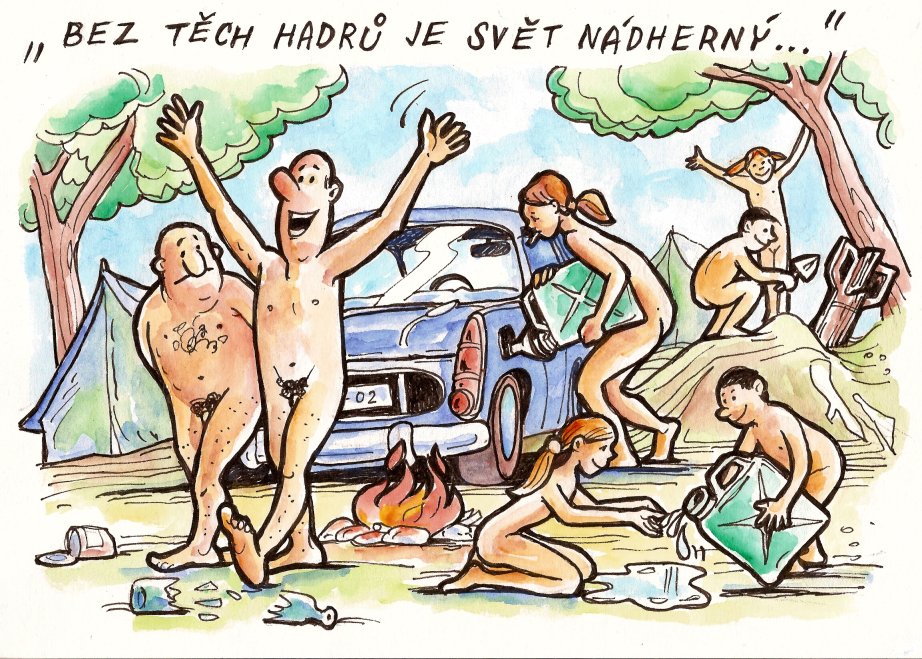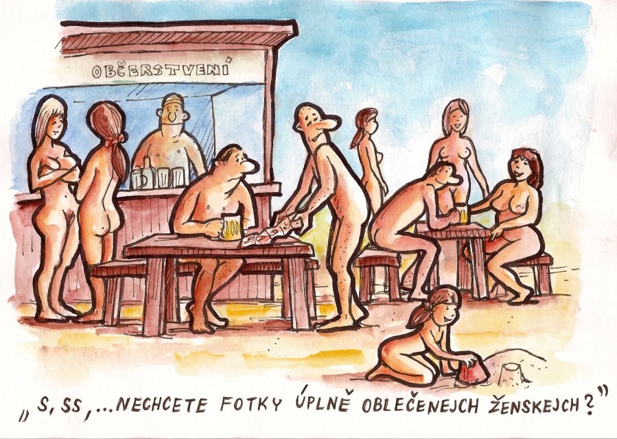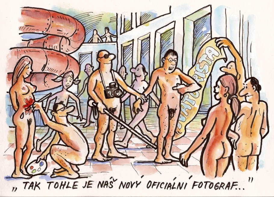 Schon seit Jahren sorgen seine humorvollen Illustrationen für eine gelungene Abwechslung auf der Webseite der tschechischen Naturisten → www.naturista.cz.