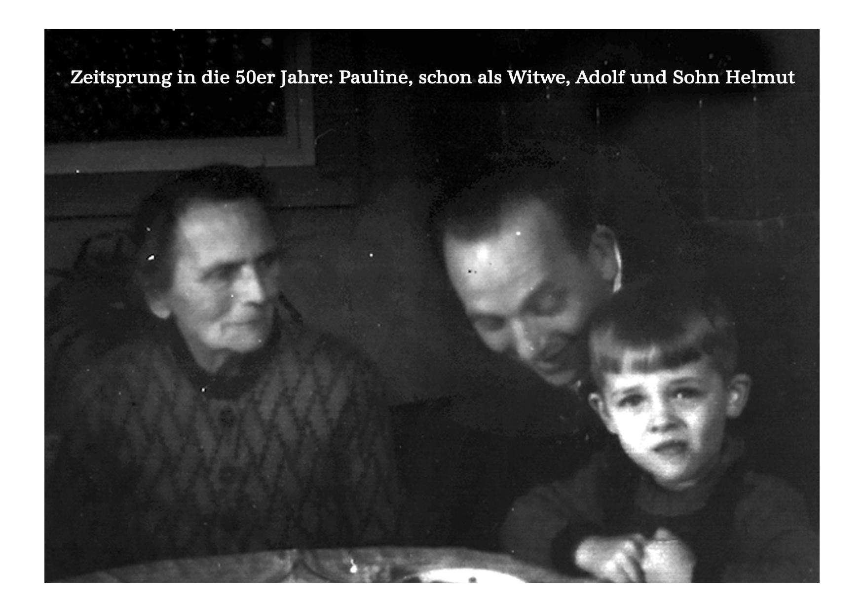 1949 sorgte Adolf dafür, das Mutter und Kind für lange Zeit in die Schweiz – zu FKK-Anhängern – reisen konnten und dort „aufgepäppelt” wurden. Zu dieser Zeit war er schon mit Irmgard Richter, seiner späteren (dritten) Frau, zusammen, die sich dennoch besorgt um Helga und mich kümmerte. Sie als Lehrerin, war auch das finanzielle Rückgrat, aus dem sich die Alimente für mich speisten.