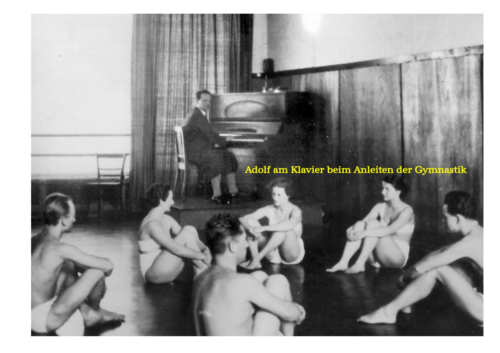 Direkt links vom Eingang lag der Saal, mit einer erhöhten Nische, in der das Klavier Adolfs stand. Dort saß er, spielte, sang, improvisierte und dirigierte die Gymnastikstunden.