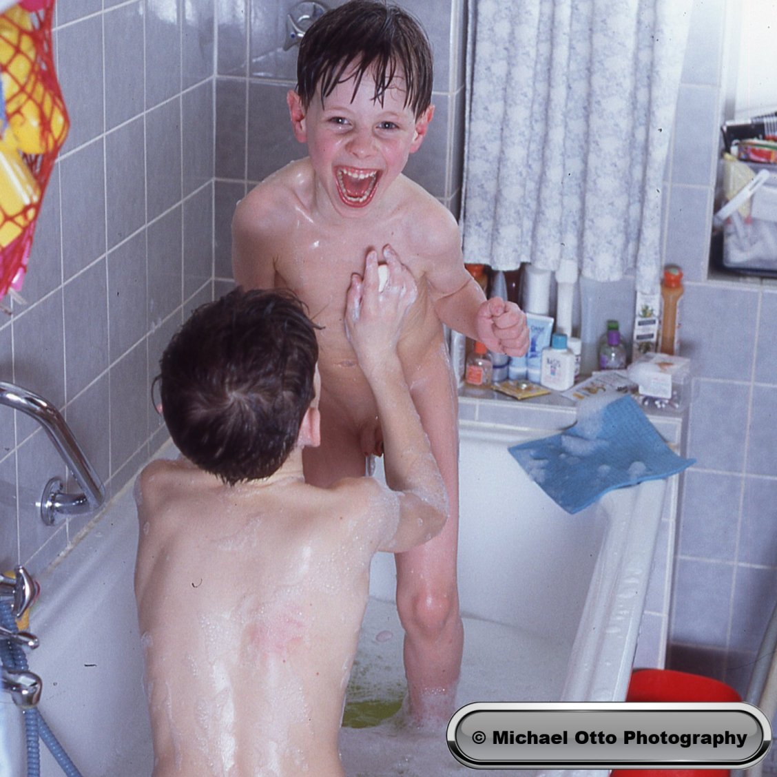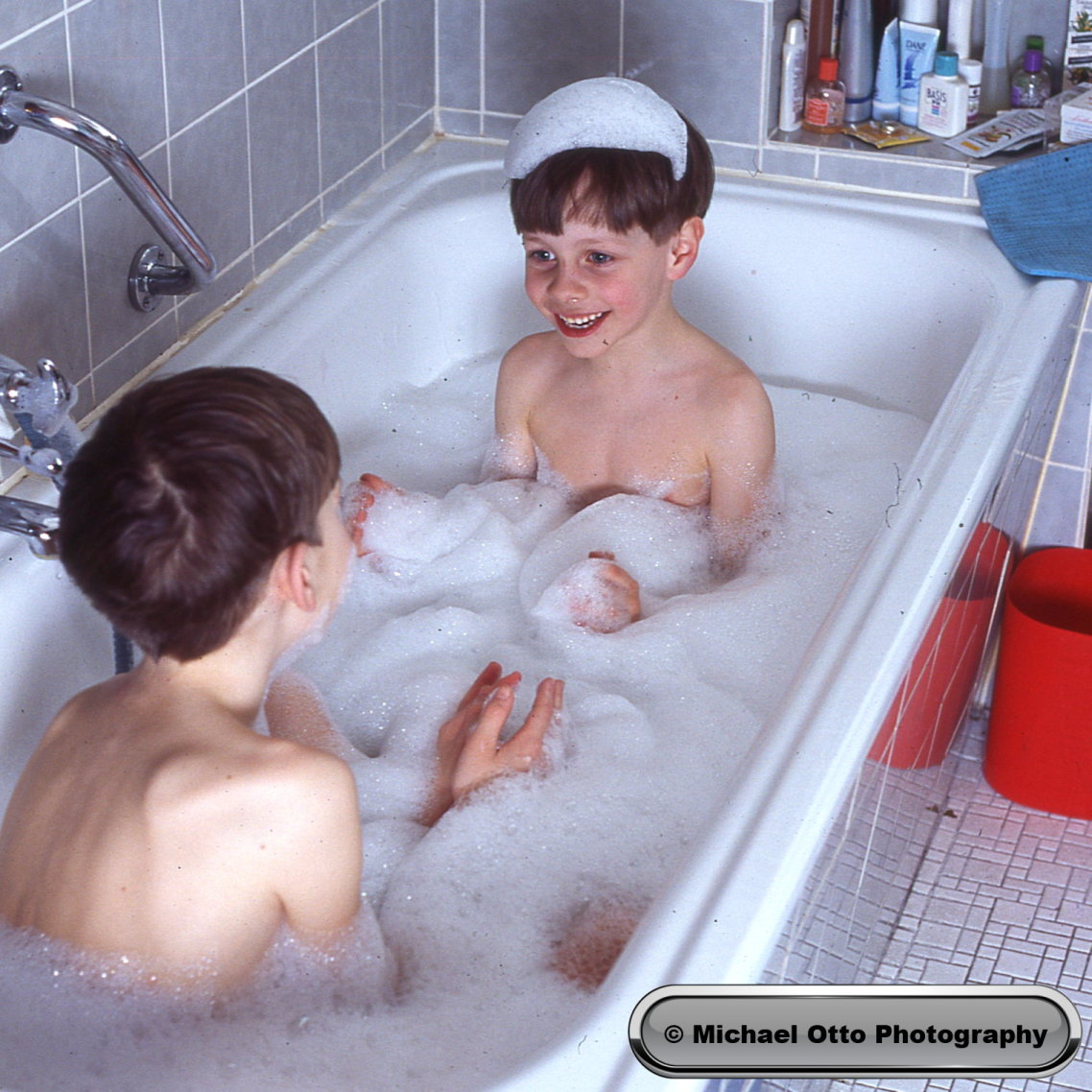 Für mich als Fotografen bestand eine weitere Aufgabe darin, die Aufnahmen so zu gestalten, dass Geschlechtsteile möglichst nicht zu sehen sind - kein Problem, bei und mit dem Schaum. Trotzdem liess es sich nicht immer vermeiden, bei so lebhaften Jungen.