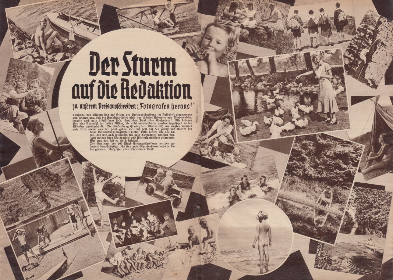 Collage Bilder, welche zu einem Foto-Preisausschreiben von den Leserinnen und Lesern eingeschickt wurden. Eine kleine Auswahl der zugesandten Bilder wurden hier zu einer Collage (auf einer Doppelseite) zu- sammengefügtDarunter einige aus dem Bereich der Freikörperkultur. |