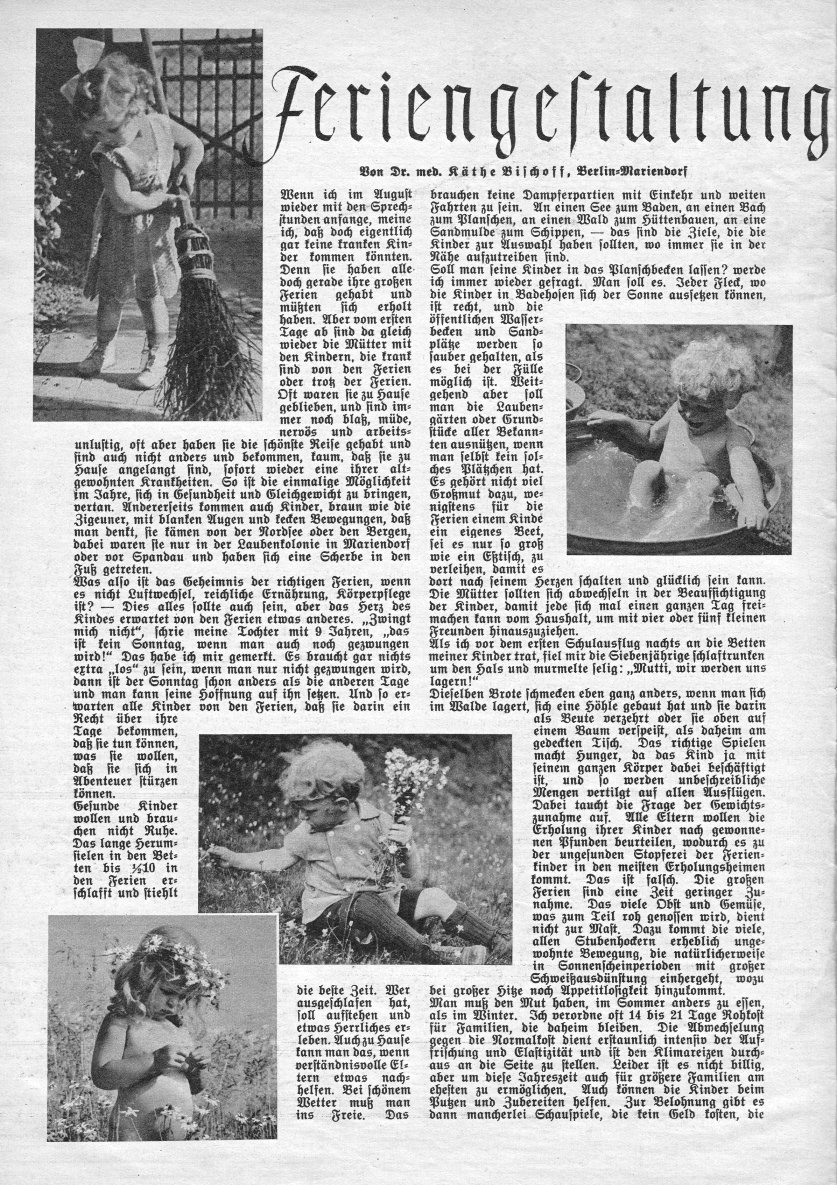 Unter der Überschrift » Feriengestaltung ohne Reise ! « wurden in dieser Ausgabe Ratschläge