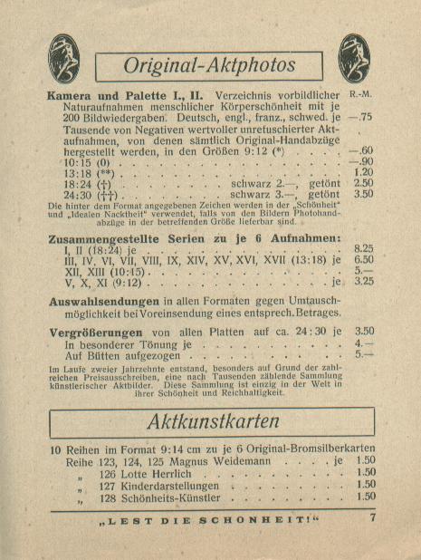 Verlagsverzeichnis - Die Schönheit - Cebula-Verlag, BerlinMehrseitiger, gehefteter Prospekt mit den im Verlag publizierten Schriften.
