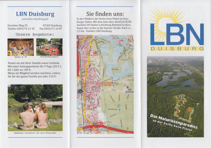 ← älterer Prospekt Werbeprospekt für den LBN Duisburg, mit Anfahrtsplan, Luftaufnahmen und Bildern von den Aktivitäten. Weitere Information unter: www.lbn-duisburg.de
