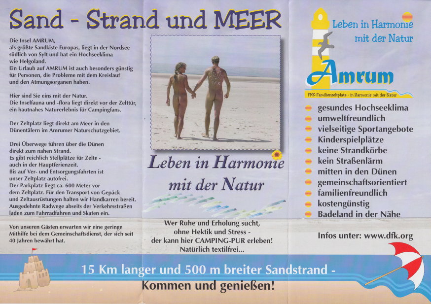 FKK-Zeltplatz Amrum FKK-Camping an der Nordsee Die einzigartige Lage inmitten des Naturschutzgebietes „Amrumer Dünen” macht den besonderen Erholungs- und Erlebniswert des Zeltplatzes aus. Für weitere Informationen → www.fkk-zeltplatz-amrum.de