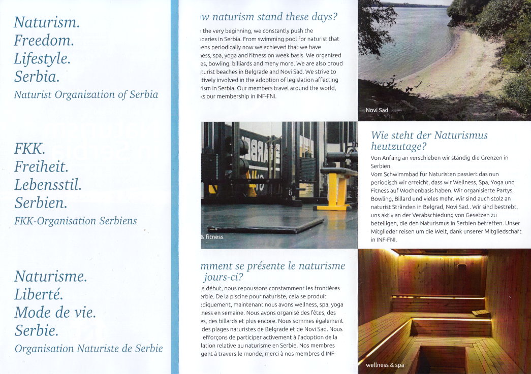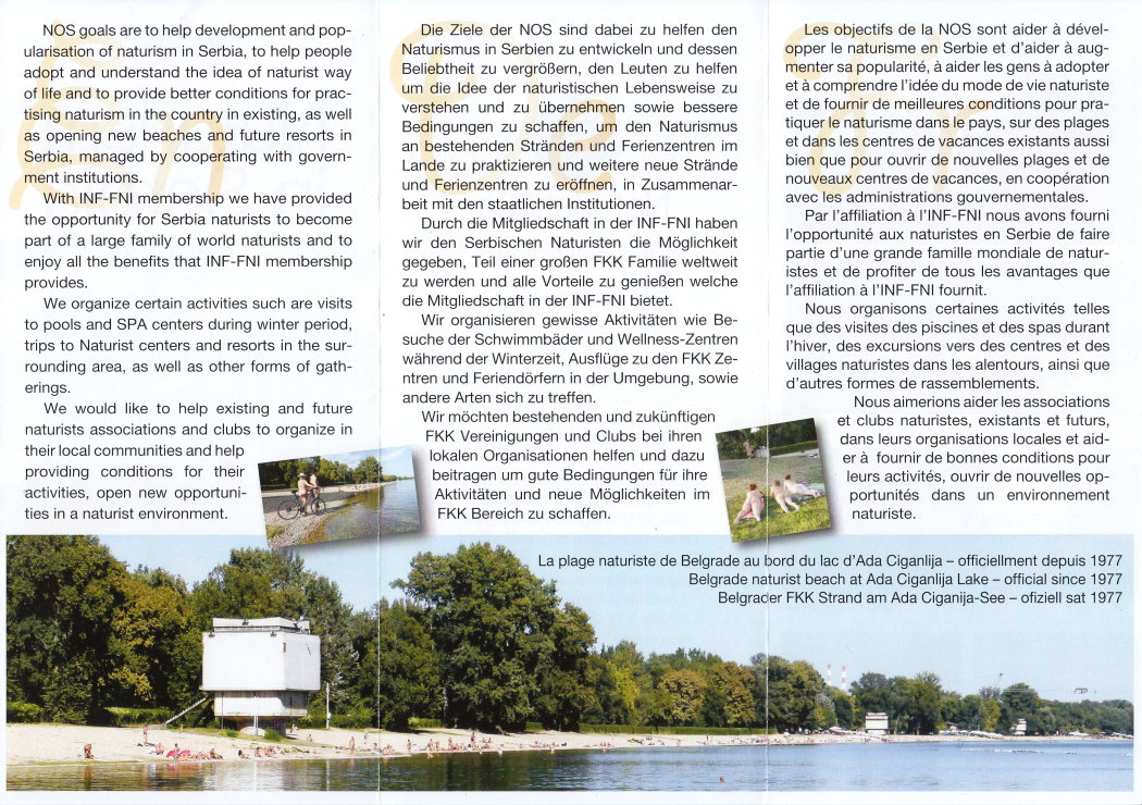 Faltprospekt der NHSC - Naturist Organization of Serbia Internet: www.nos.org.rs