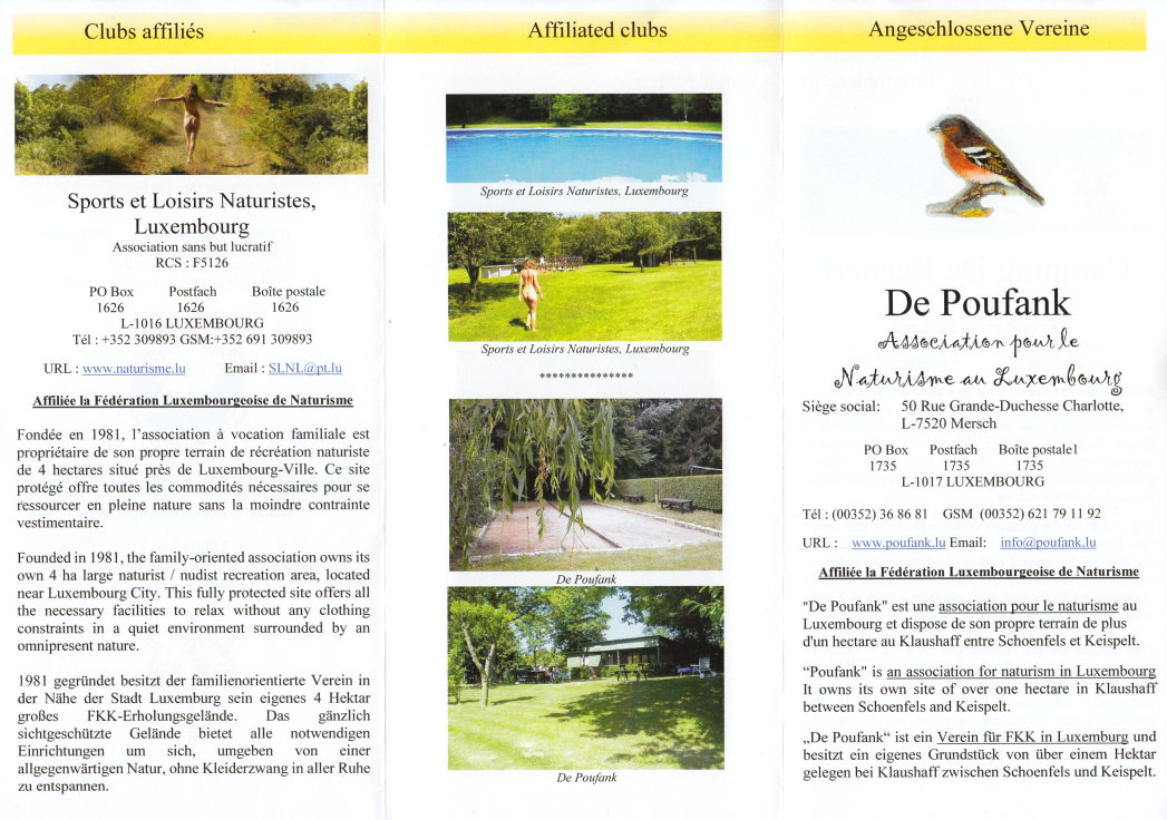 Faltprospekt der F.L.N. - Federation Luxembourgeoise de Naturisme Internet: http://homepage.internet.lu/FELUNAT/HP_FLN/index.html