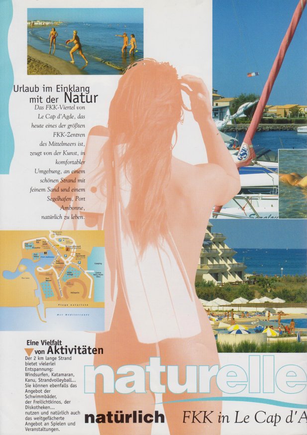Frankreich 4-seitiger Info-Prospekt im Format DIN-A4 zu dem Ferienzentrum Cap d'agde - keine Preisangaben. Sprachen: deutsch