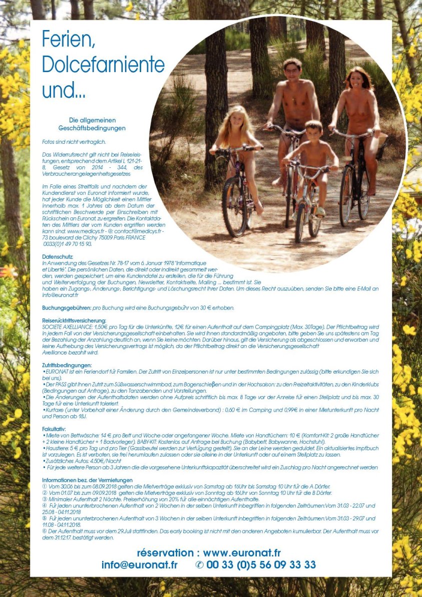 Euronat 2018 „Gemeinsam - Natur... natürlich, natürlich wohl !” FKK-Ferien und Thalassotherapie Format DIN-A4 mit 20 Seiten