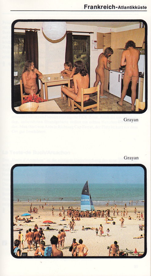 | Der „FKK Urlaubsführer Europa” erschien bis 1982 im Geobuch-Verlag, mit der Ausgabe für das Jahr 1983 dann im Nelles-Verlag. Herausgeber war zunächst der Geobuch-Verlag, ab 1981 zeichnete sich der AvD (Automobilclub von Deutschland) verantwortlich. Das in den Urlaubsführern verwendete Bildmaterial der Reiseveranstalter Miramare und Oböna war meist gleich und wiederholte sich von Jahr zu Jahr. |