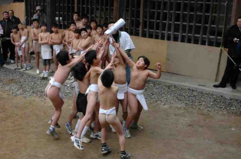 Bevor die erwachsenen Männer die Jagd nach dem Glück beginnen, sind die Kinder dran: das Hadaka Matsuri findet für die Schüler der Grundschule statt, welche ab 18:00 Uhr jeweils in kleinen Gruppen um Schatzsymbole spielen und kämpfen. Auch Mädchen machen mit, tragen ebenfalls - wie ihre Mitschüler - nur einen Lendenschurz, bzw. eine Turnhose.