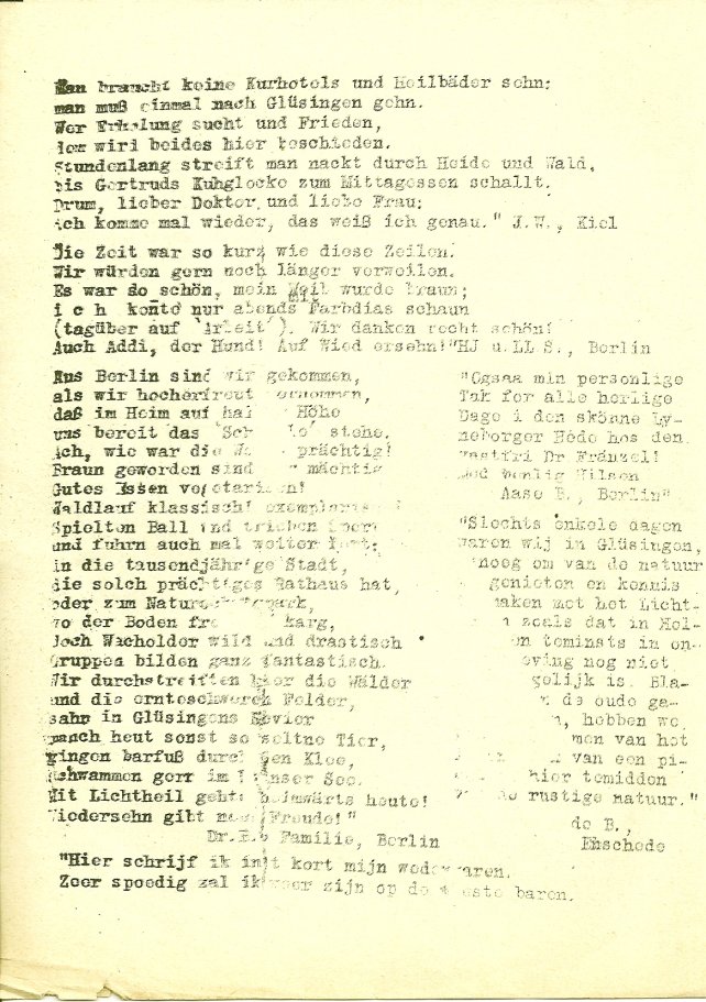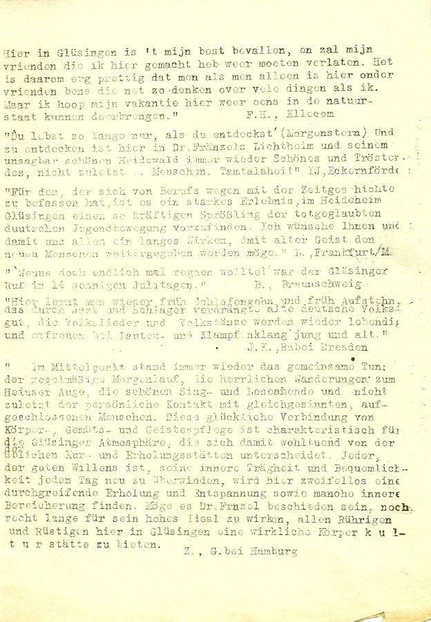 „Mein Vater war lebensreformerisch eingestellt und war Vorsitzender des Neusonnlandbundes in Berlin. ... Um sozusagen »in Freiheit dressiert« zu werden, .... meldete mein Vater mich in Glüsingen an.
