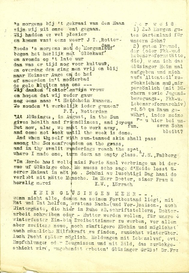 Viele Jahrzehnte später eschien auch in der Zeitschrift „Sonnenfans” ein dreiseitiger Bericht von Dr. Schultze-Naumburg.