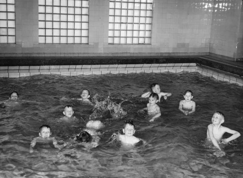 1950 — In der Ruseløkka Schule in Oslo (im Stadtteil Frogner) fand bis in die späten 1950er Jahre der Schwimmunterricht für die Jungen auch nur nackt statt (Lehrpersonal in Badebekleidung).