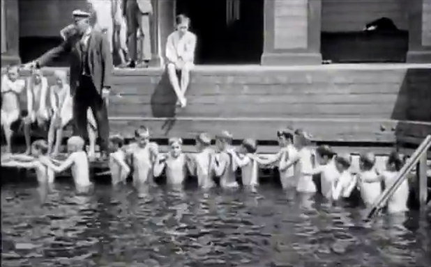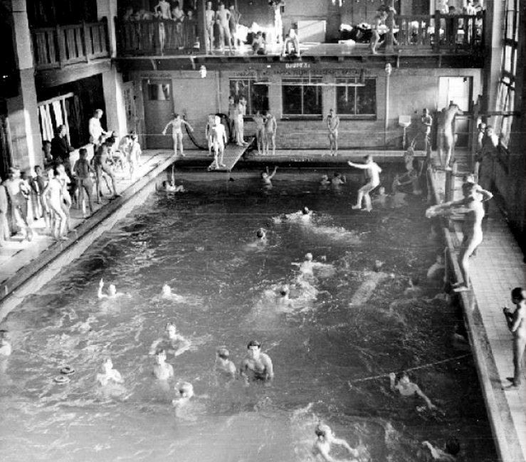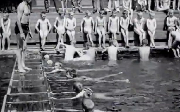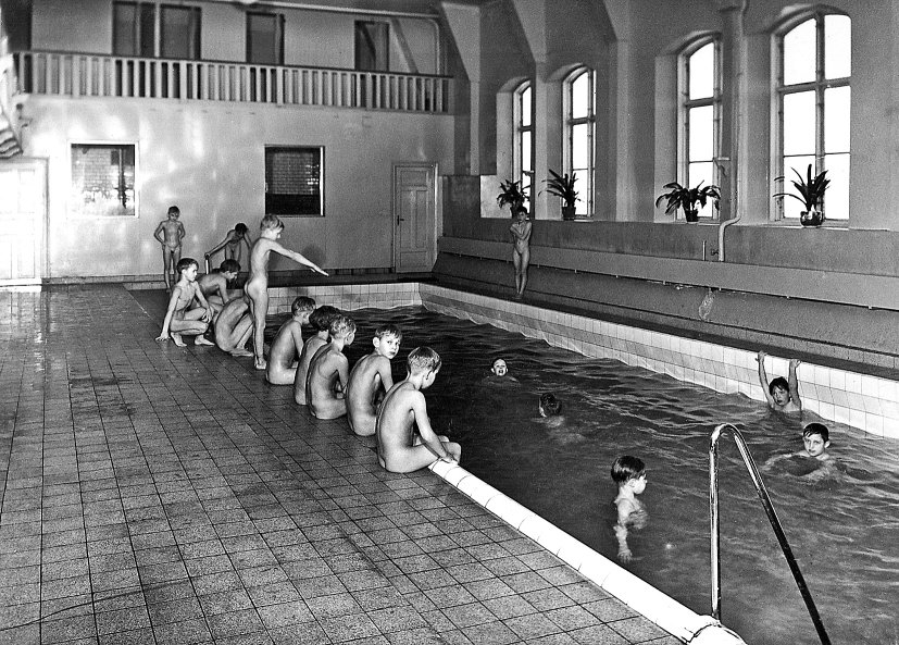 1908 in Kalmar (Süd-Schweden) - der Schwimmunterricht fand nur für die Jungen statt, natürlich nackt. Mädchen „brauchten” allgemein nicht schwimmen zu können, folglich dann auch nicht zu lernen. Die Mädchen wurden während dieser Zeit dann in Haushaltsaufgaben unterrichtet. In größeren Städten war es vom Schulgesetz auch vorgeschrieben, dass Jungen und Mädchen getrennt voneinander unterrichtet wurden. In ländlicheren Gebieten war dies jedoch nicht immer durchführbar.