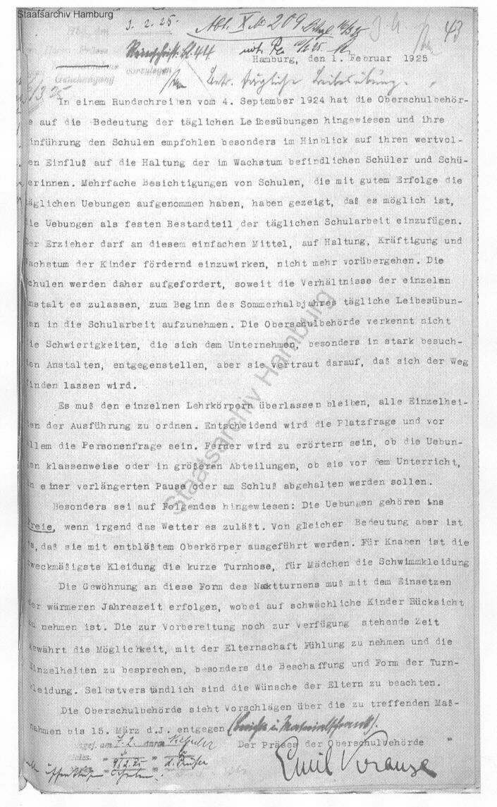 • Staatsarchiv Hamburg - Oberschulbehörde vom 01.02.1925