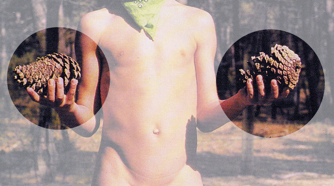 Dieser Junge hier hat zwei ganz besonders schöne und große Tannenzapfen gefunden, woraus sich bestimmt ganz gut kleine „Wald-Wichtel” basteln lassen.