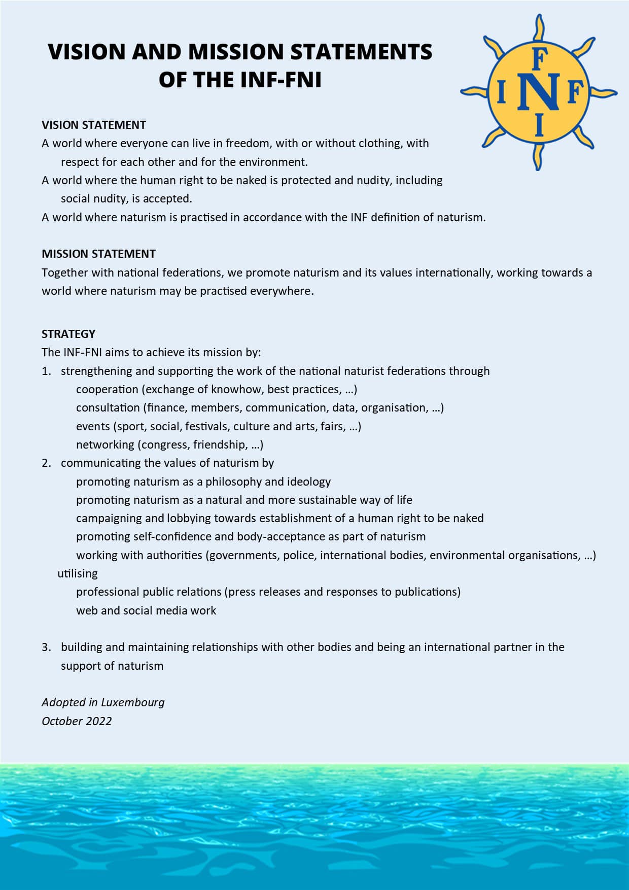 Auf dem 3. Naturisten-Weltkongress in Montalivet wurde am 23.08.1953 die »Internationale Naturisten-Föderation« (INF) gegründet. Auf drängen der Franzosen wurde der Abkürzung »INF« noch die Kürzel »FNI« (Fédération Naturisme Internationale) hinzugefügt. Die INF/FNI setzt sich inzwischen aus Mitgliedern aus mehr als dreißig Ländern zusammen und hat sich u.a. zum Ziel gesetzt, die Vorzüge des Naturismus in der Öffentlichkeit zu bewerben und somit den Naturismus zu stärken und zu verbessern.