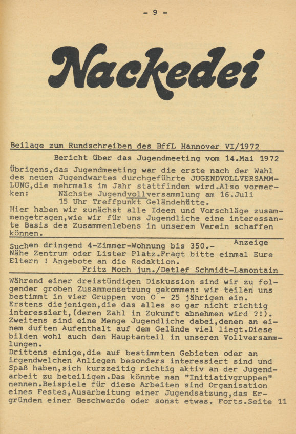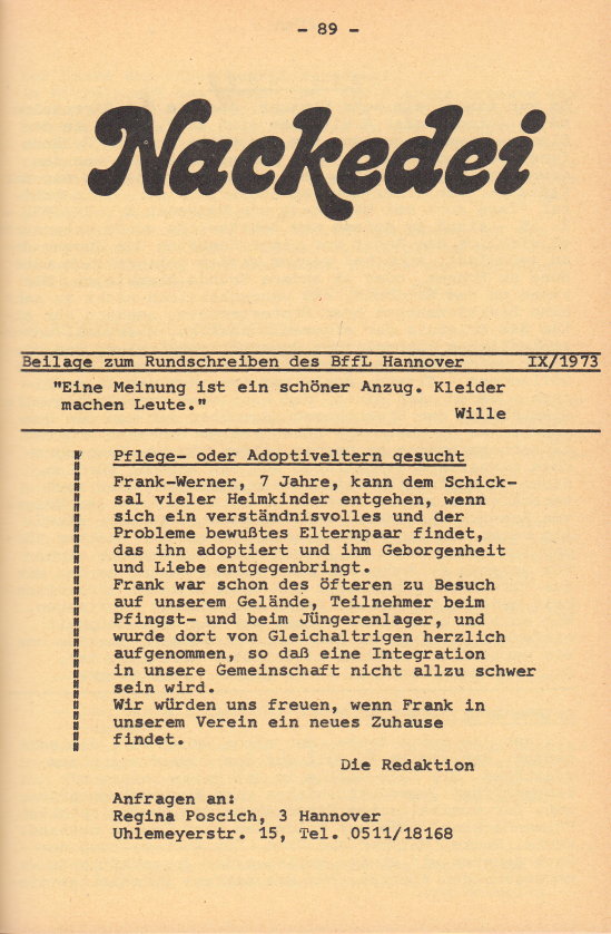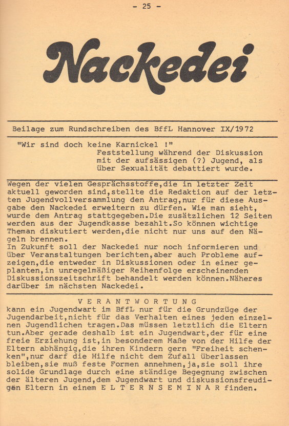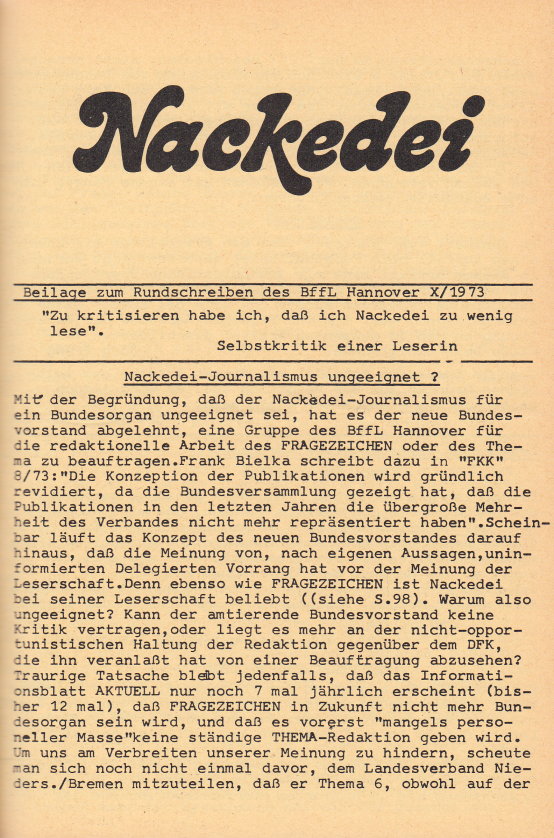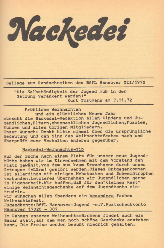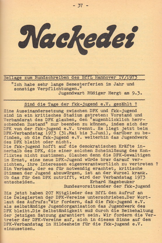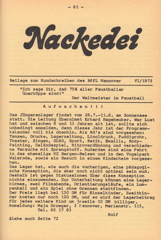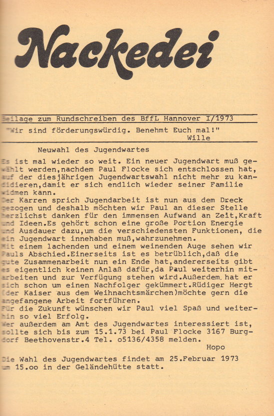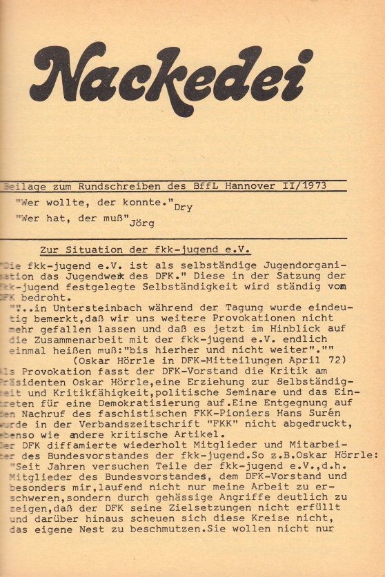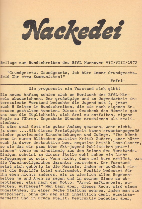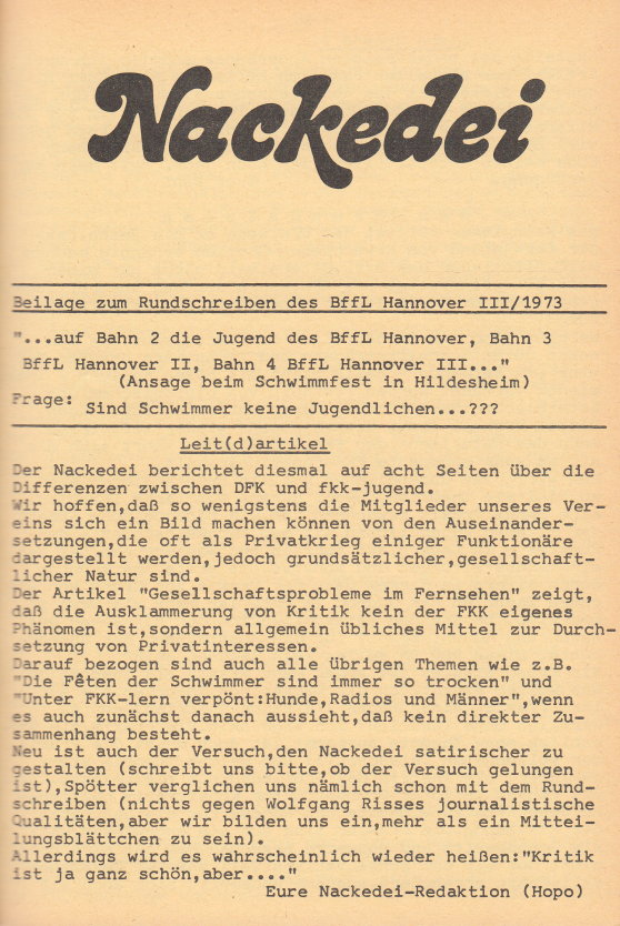„Nackedei” ist das Mitteilungsblatt / Rundschreiben für die FKK-Jugend im BffL Hannover