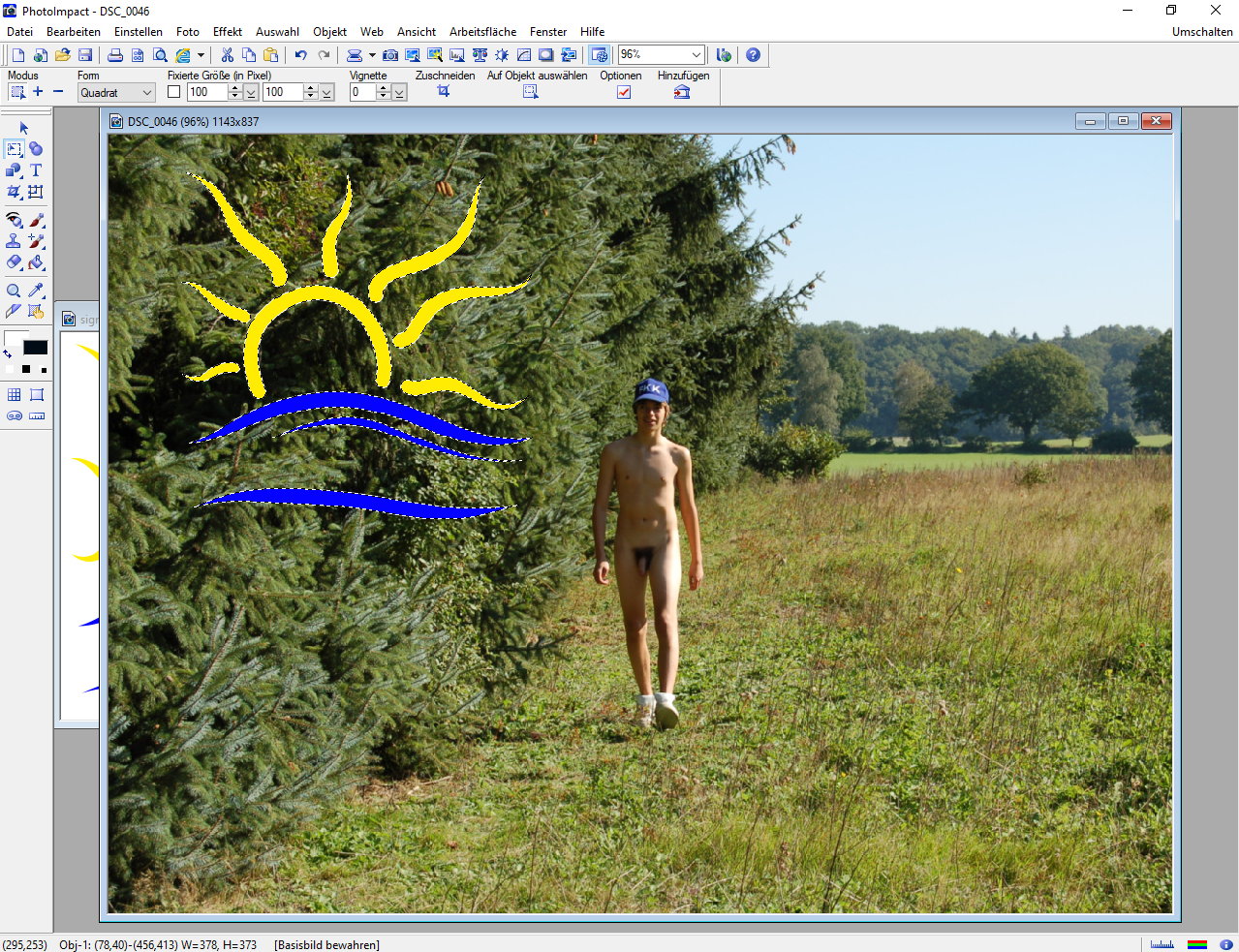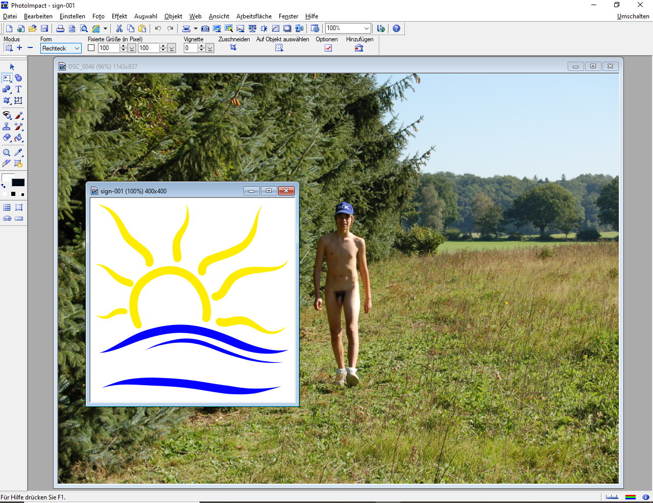 Mit gedrückter linker Maus-Taste auf dem Naturist- Symbol könnt Ihr nun das Symbol frei auf Eurem Foto hin und her bewegen. Habt Ihr eine passende Stelle gefunden, wo das Naturist-Symbol bleiben soll, einfach die linke Maus- Taste loslassen.