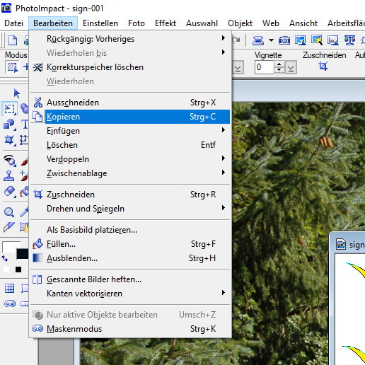 Nun dem Reiter „Bearbeiten” nun auf „Kopieren” klicken und schon habt Ihr das Naturist-Symbol in Eurem »Zwischenspeicher«.