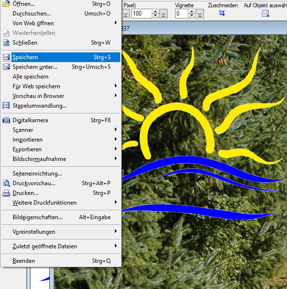 Bei dem Reiter „Datei” habt Ihr die Wahl zwischen dem »einfachen« speichern und der Möglichkeit diesem neuen Bild auch einen neuen Namen zu geben. |