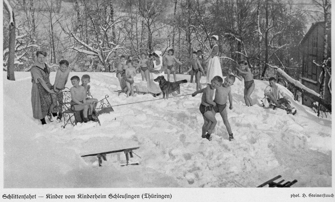 1892 wurde das Kur- und Kinderheim Schleusingen (Thüringen) errichtet, wobei es anfänglich als Heim für Taubstumme diente. Bei einer geringen Auslastung wurde es dann schnell zu einem Kur- und Kinderheim in welchem großen Wert auf die körperliche und sportliche Betätigung der Kinder gelegt wurde. Dazu gehörte in den 1920er Jahren, dass der Sport unbekleidet, zumindest aber nur mit einer Hose bekleidet, statt fand - auch zur Abhärtung im Winter.