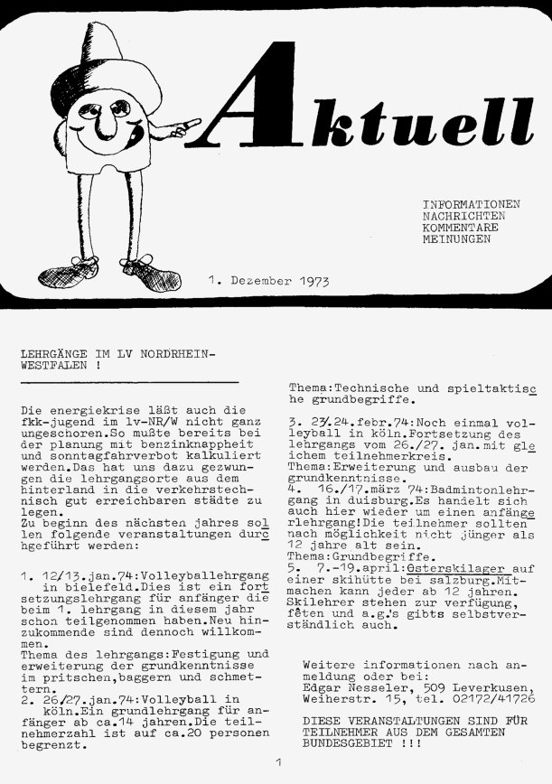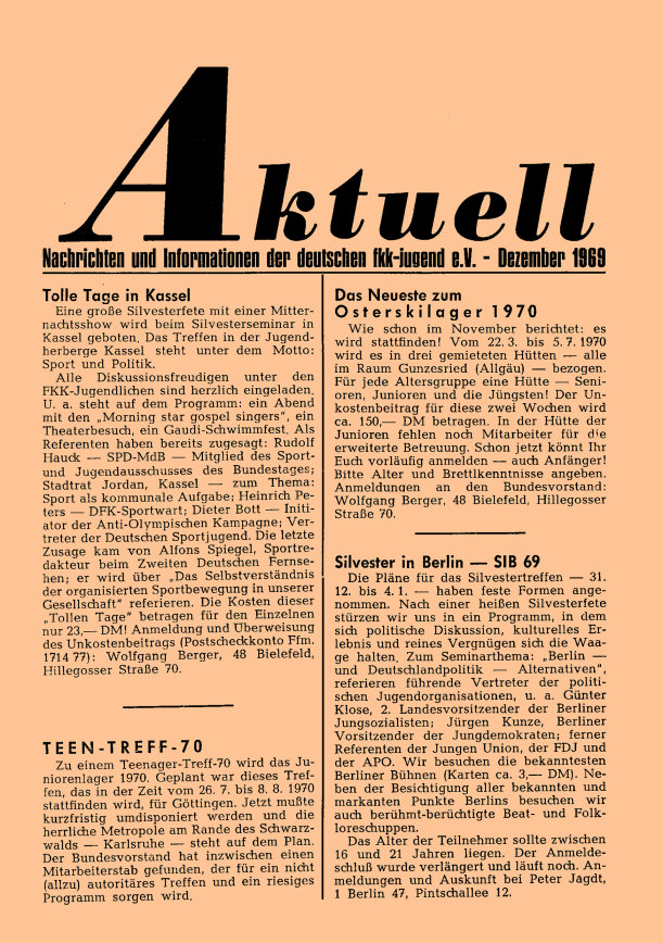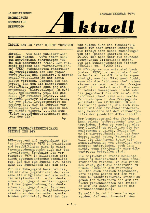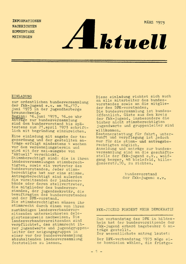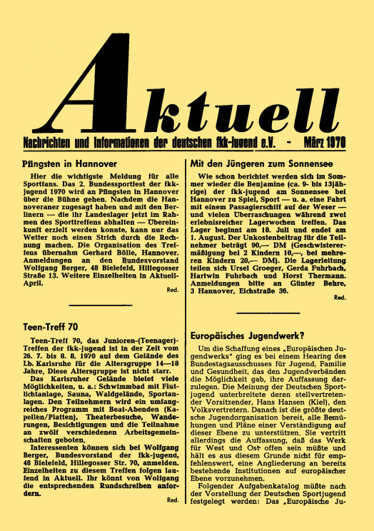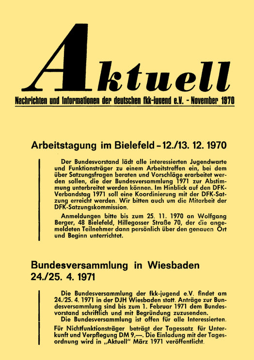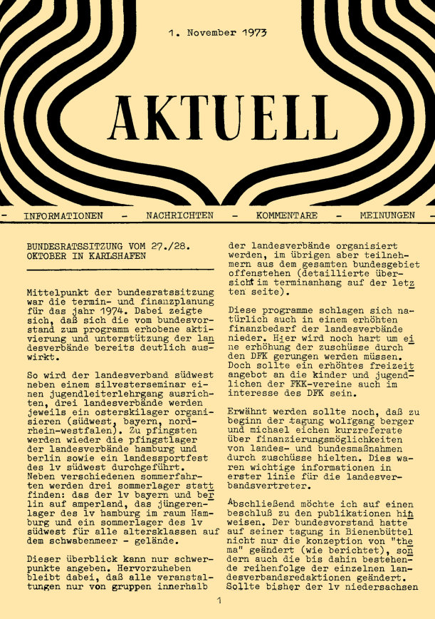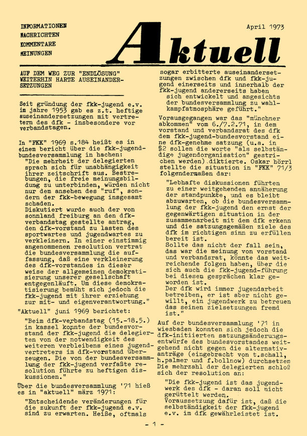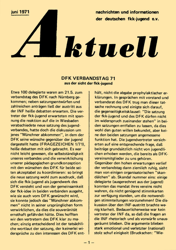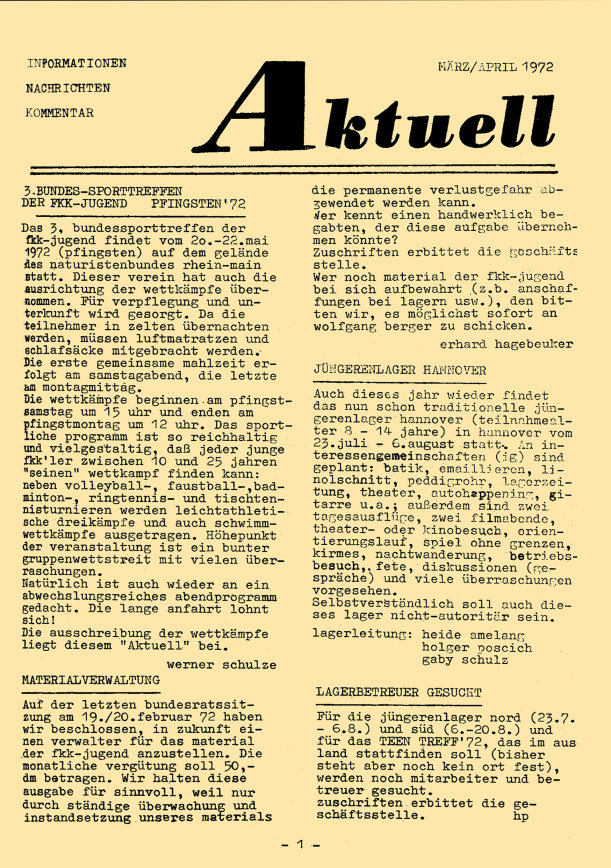 „aktuell” ist das Mitteilungsblatt der fkk-jugend e.V.