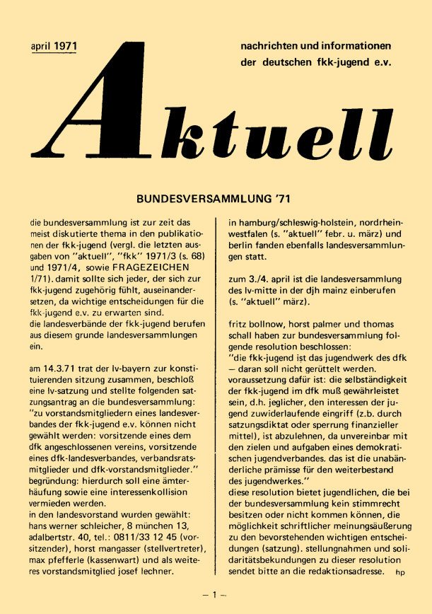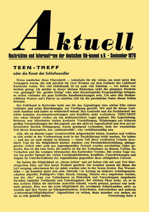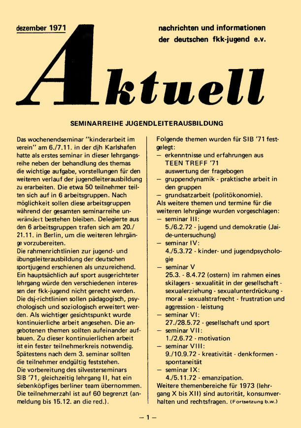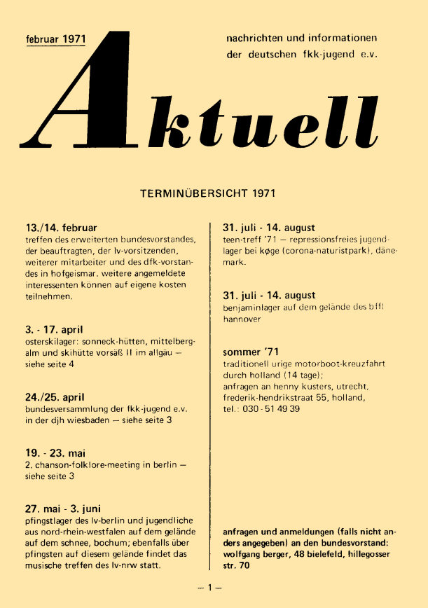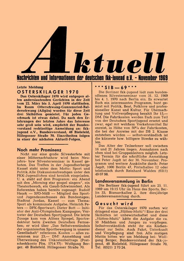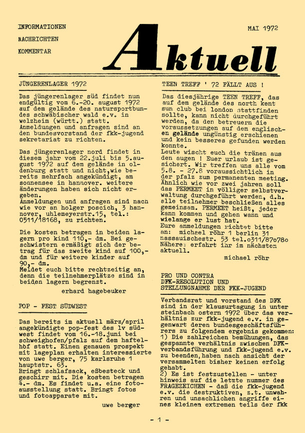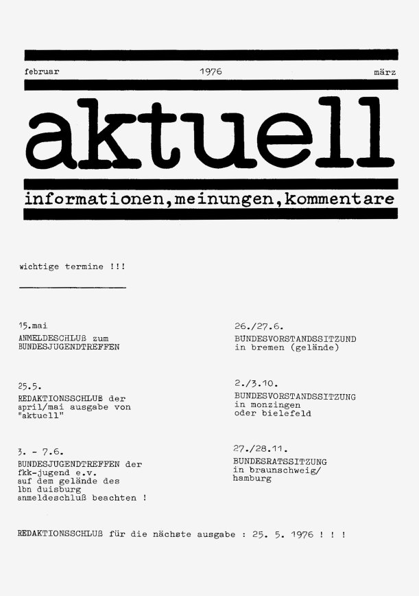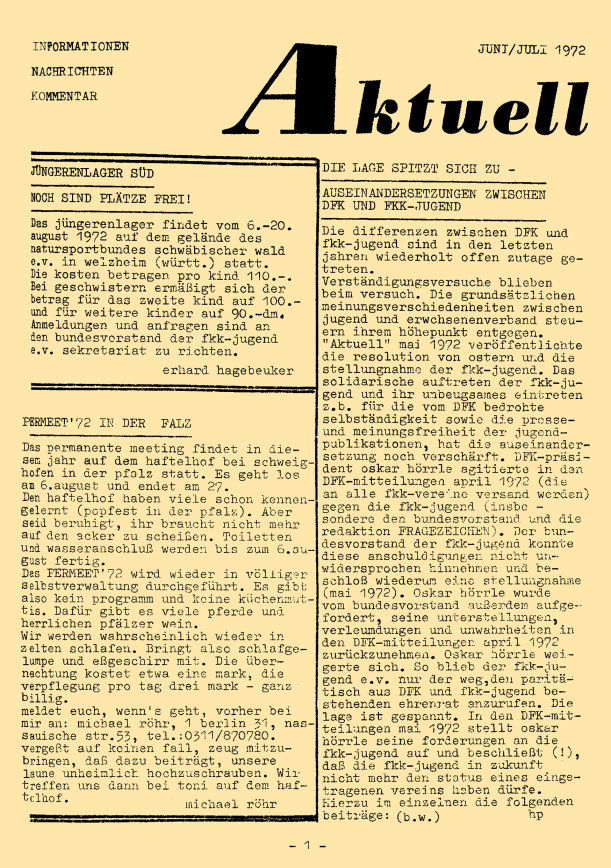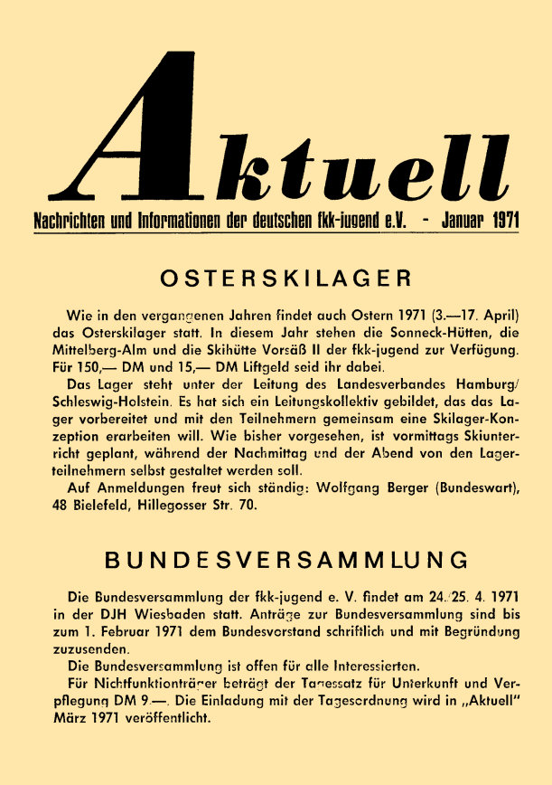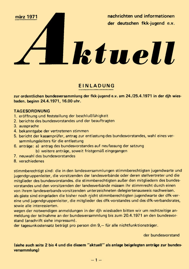 „aktuell” ist das Mitteilungsblatt der fkk-jugend e.V.