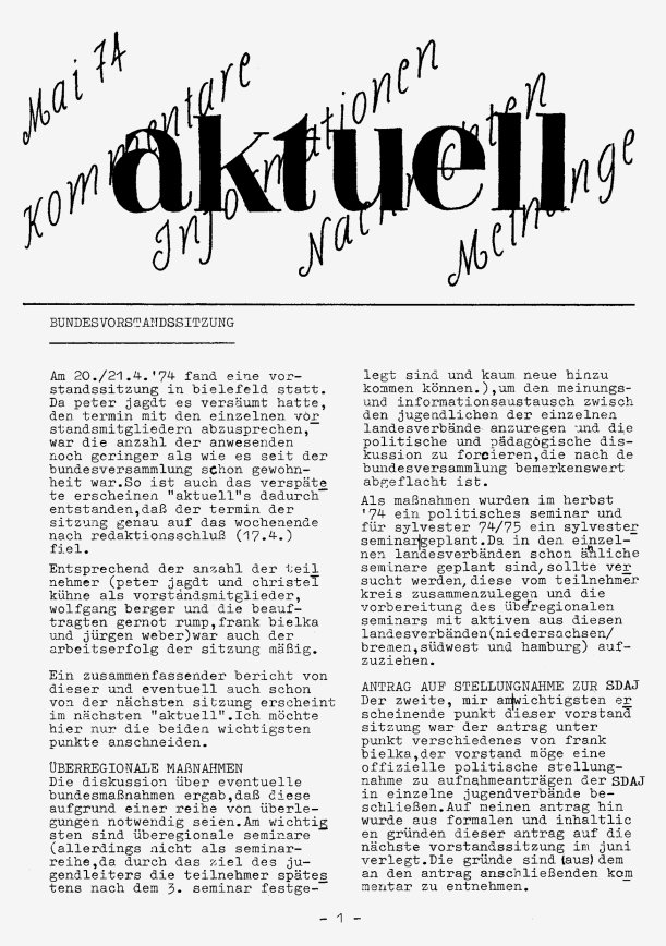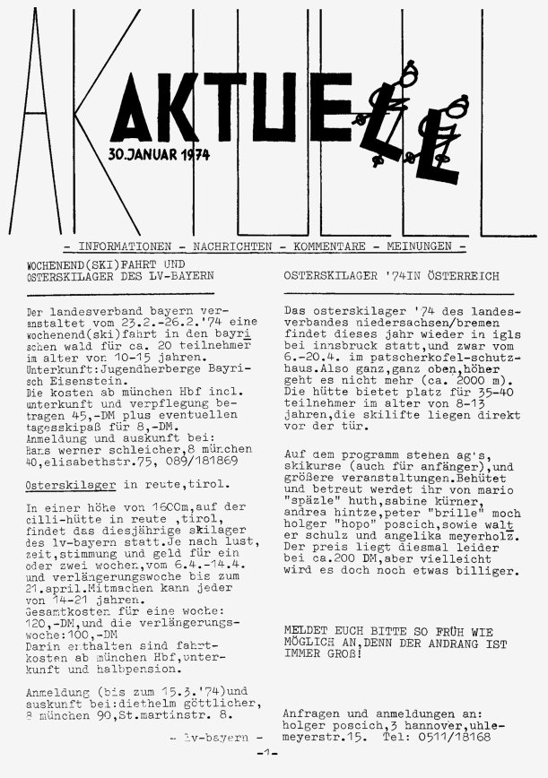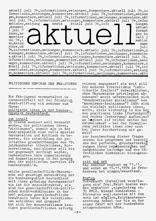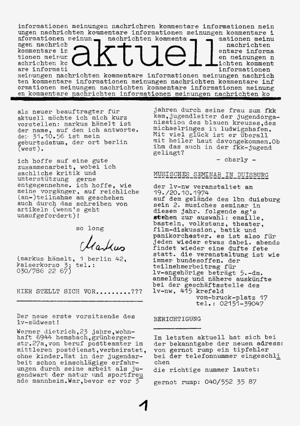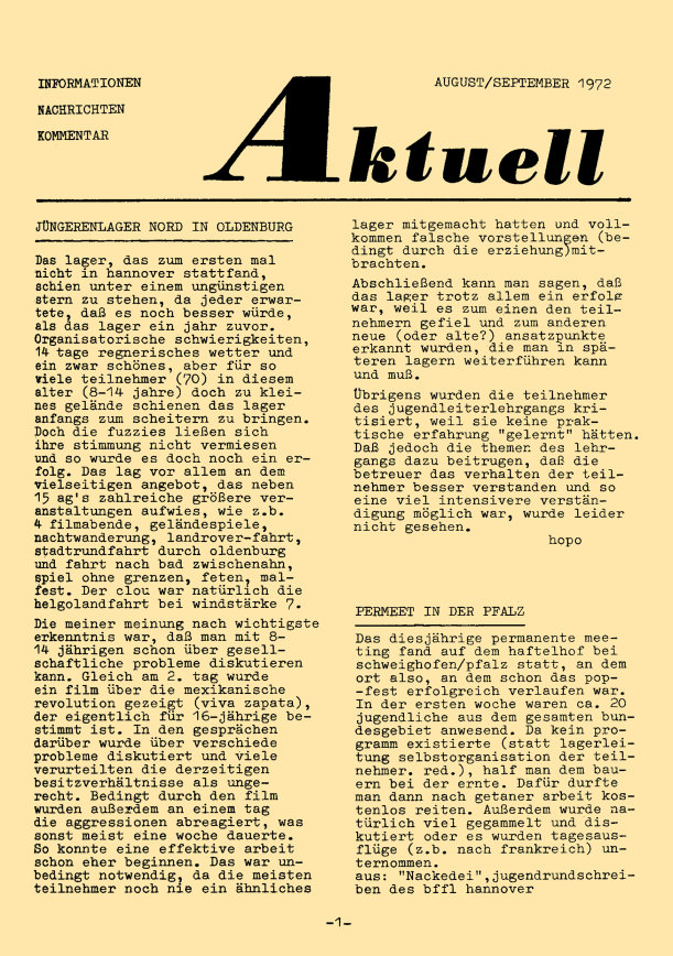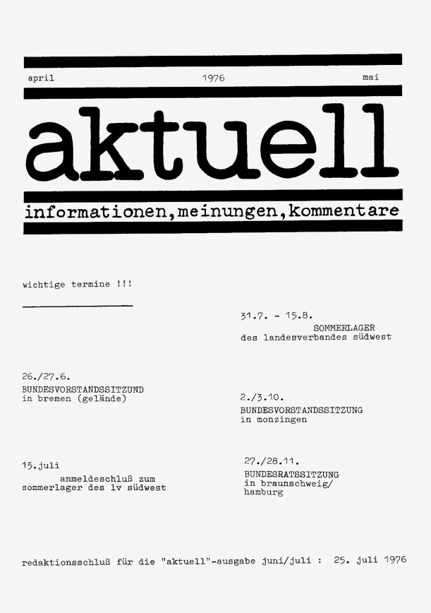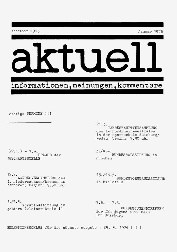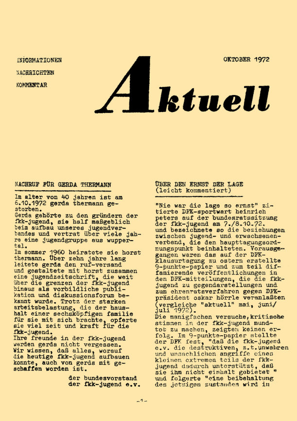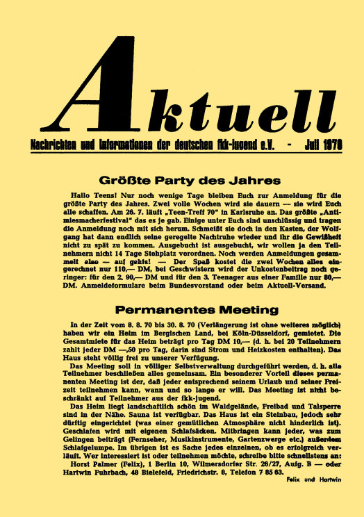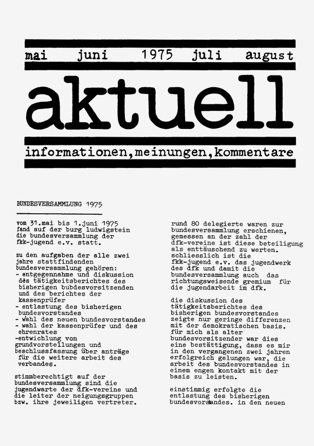 „aktuell” ist das Mitteilungsblatt der fkk-jugend e.V.