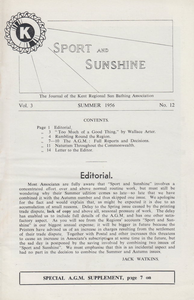 Keine öffentlich zu kaufende Zeitschrift - „Sport and Sunshine” ist das offizielle Magazin für die Mitglieder der »Kent Regional Sun Bathing Association«. Die Hefte erschienen nicht regelmäßig.