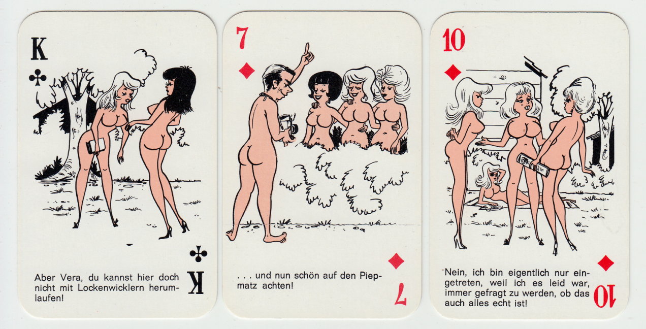 Dieses Kartenspiel stammt aus den 1960er Jahren und hat den Hinweis, dass es „Nicht für Jugendliche unter 18 Jahren” geeignet sei.