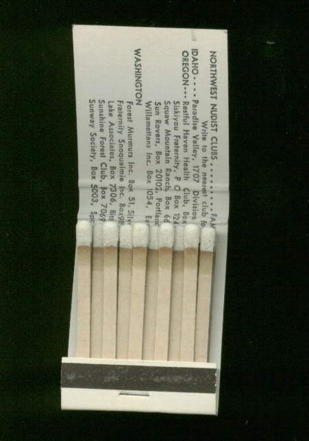 und dem Hinweis auf Mitgliedschaften in einem Verein. Adressen aus Idaho, Oregon und Washington sind im Innenteil des Streichholzbriefes vermerkt.