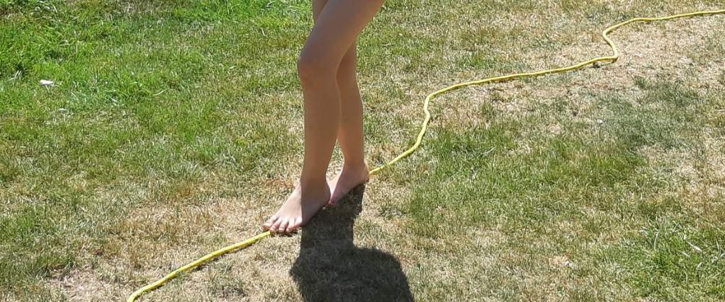 Ein durchaus herausforderndes Wettkampfspiel für die Jüngsten ➽ Gleich lange Seile werden nebeneinander so verlegt, dass sie Kurven und auch Kreise bilden. Auf diesen Seilen müssen die Kleinen so schnell, wie nur möglich bis zu deren Ende gelangen. Nicht in Schritten, sondern Fuß an Fuß.