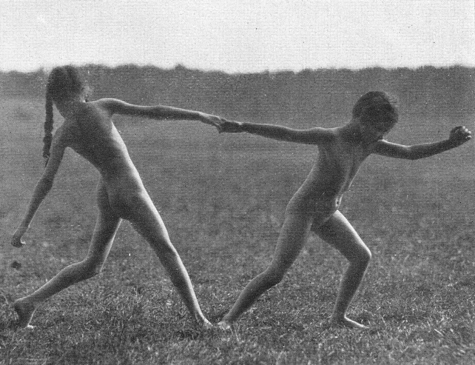 Die Teilnehmer/innen stehen sich in Spreizstellung einander gegenüber, die jeweils rechten Füße mit den Außenseiten aneinandergepresst und fassen sich an der rechten Hand.