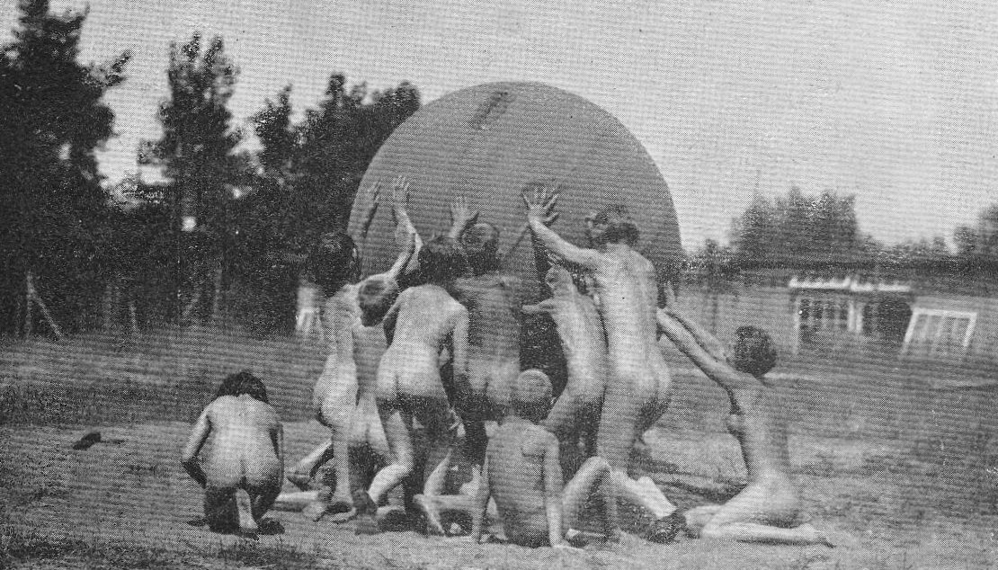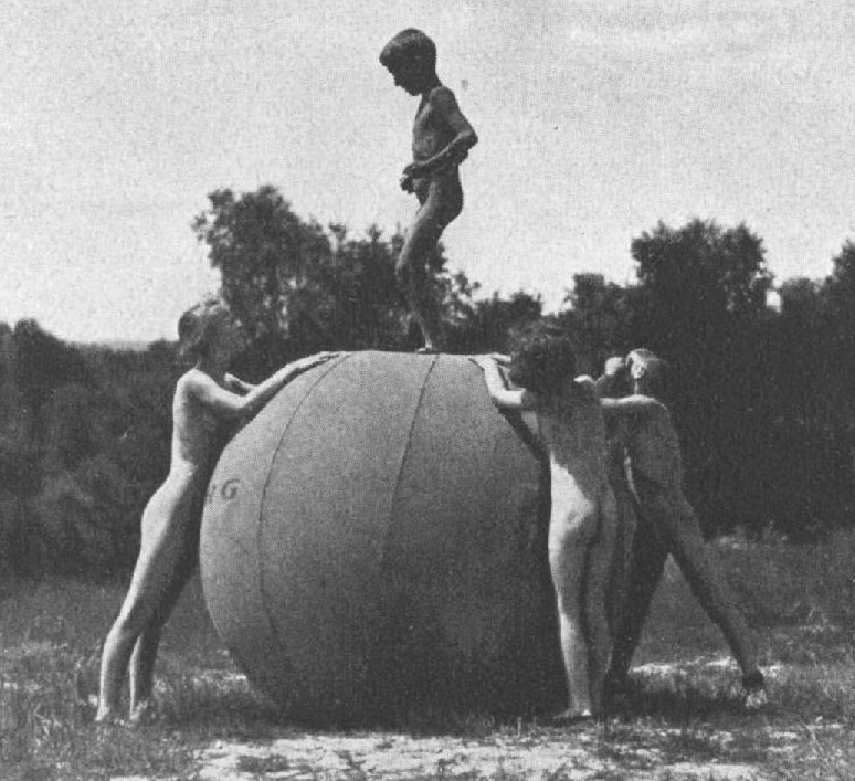 Dieser überdimensional große Ball mit einem Durchmasser von ungefähr 150 cm war früher sehr beliebt - und dies nicht nur bei den Naturisten.