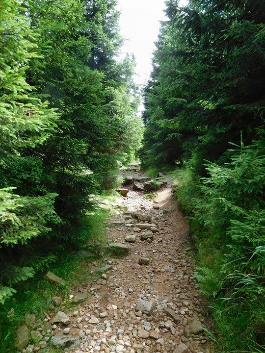 Dem Graben sind wir dann eine Weile gefolgt. Anschließend hielten wir uns leicht links, um dem Goetheweg ein Stück zu folgen. Dann hielten wir uns aber für ca. 2,7 Kilometer rechts um über den Kaiserweg zum „Dreieckigen Pfahl” zu gelangen. Auf dem Weg dort hin kamen wir an einer Schutzhütte und einem traumhaft schönen Biotop vorbei. Dazwischen sind wir einem beeindruckenden Trail über Stock und Stein gefolgt. Zwischendurch blieben wir ein paar mal stehen, um die leckeren Blaubeeren zu naschen.