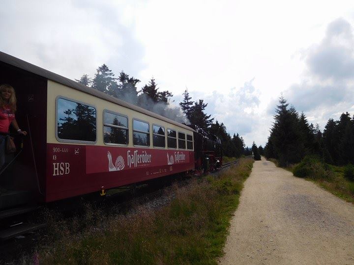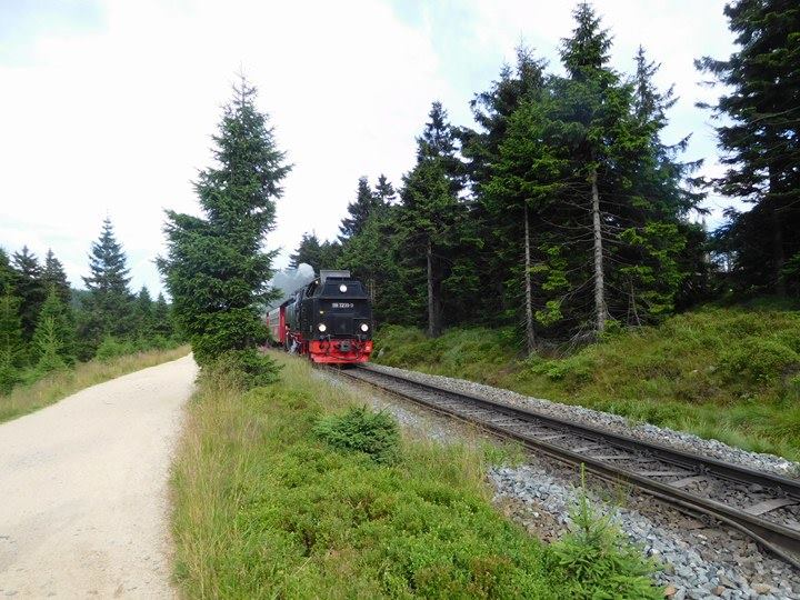 Nach ungefähr 15 Minuten ging es dann für ca. 2,5 Kilometer weiter entlang der Bahngleise der Brockenbahn, bis wir an der Brockenstraße angelangt sind. Dort legten wir bei immer noch traumhaftem Wetter eine weitere Pause ein, bevor wir die letzten 1,5 Kilometer auf der Brockenstraße in Angriff nahmen. Die führt nämlich ziemlich steil durch die „Knochenbrecherkurve” hinauf zum Gipfel auf 1142m Höhe.